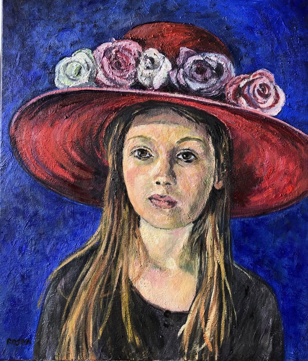 jeune fille avec chapeau rouge. l'huile sur toile 65 x75 cm 2024